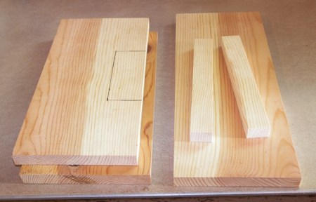 • 2 short pieces of wood measuring 21cm long by 3cm wide (8 1/4″ long by 1 3/16″ wide)