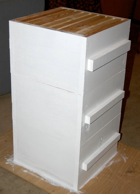 What sort of paint do you use? Just latex exterior? For a nude covering, what’s best – lynseed oil? I just read something on the warre yahoo group that painting the front of the hive white is a good idea, so that bees can more easily see the high contrast with the opening of the hive.